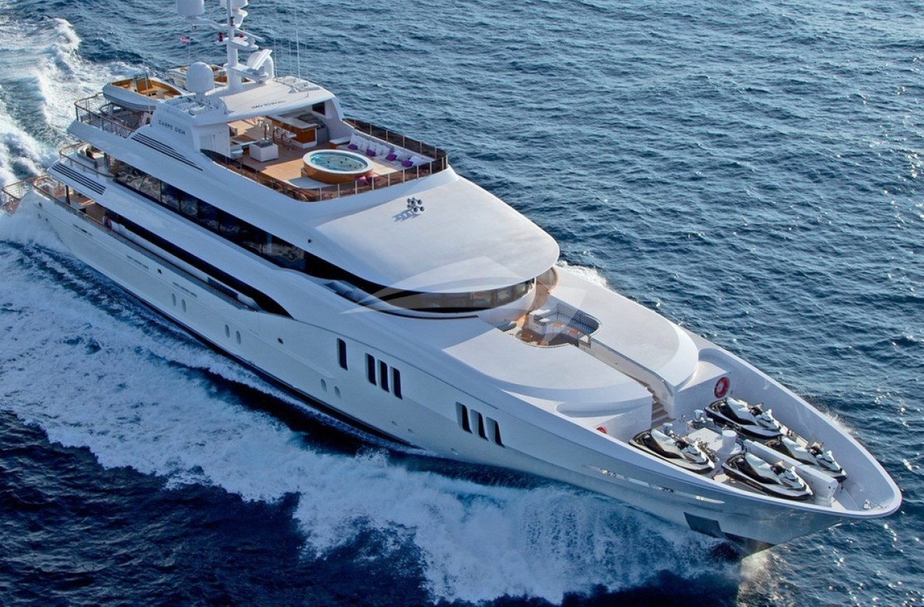 Offered by DMA Yachting, the breathtaking charter yacht CARPE DIEM is a 191 ft motor yacht featuring a jetski and a hot tub. The most attractive features of CARPE DIEM are her impeccable styling and alfresco dining areas. CARPE DIEM spends the summer and winter season in the Bahamas. She was constructed by the famous yacht builder Trinity Yachts in 2011. A comprehensive refit was delivered in 2022. The expansive yacht layout features 6 cozy cabins and easily accommodates up to 12 guests.