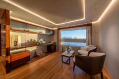 A total of 5 staterooms accommodating up to 10 guests, complimented by a professional crew of 9.All accommodations are equipped with TV, individual climate control, individual satellite receivers, complete blackout, reading lights, robes, slippers, hair-dryers, Bulgari bath products, telephone, and Wi-Fi access.