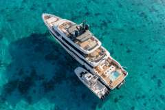 Alpha Waves sleeps 10 guests across five well-appointed cabins, including an expansive main-deck Owner’s suite, and two king-size VIPs and two twin cabins, all with en suite bathrooms, on her lower deck. The yacht’s experienced crew of nine is there to ensure each guest’s need is taken care of.