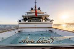 ALPHA WAVES is classified as a superyacht. The key part of the yacht, roomy aft deck, elegantly connects to the the heart of the yacht - the main saloon. The main saloon is a well-design space with comfortable seating and entertainment areas and serves as a location of entertainment. 6 spacious cabins are purposefully laid out for maximum privacy and comfort.