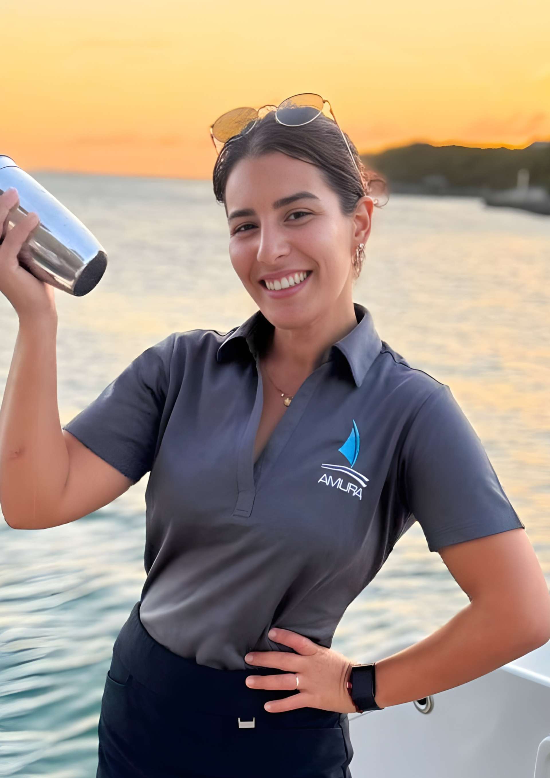 Mae began her journey with Amura as a third crew member, working alongside Rebecca and Max. Through dedication and passion, she quickly worked her way up to become an incredible chef. Originally from Cuba, Mae brings a warm presence and strong work ethic to every charter. Known for her hard work and attentive service, she ensures glasses are never empty and guests always feel cared for. Her culinary creations are as delicious as they are beautifully presented, making every meal an experience to remember.