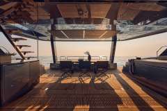 Archipelago III is introduced primarily as a power catamaran. The the core layout is spread out from the main saloon, which connects to the aft deck. The aft deck is where heart of the yacht is and that's where most of the delicious meals are served. The tastefully decorated cabins are located in the 2 massive hulls. The cabins are connected by stairs to the main saloon - roomy, comfortable and pleasant. Multiple portholes add to the feeling of connection with the discovered environment.