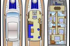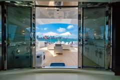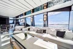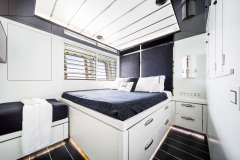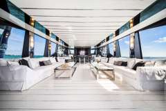 Double Shot is classified as a superyacht. The prominent section of the yacht, inviting aft deck, elegantly connects to the well-equipped and inviting main saloon. The main saloon is a well-design space to spend time when the aft deck might not be as desirable (at port, private conversations) and offers a range of entertainment options. 5 comfortable cabins are laid out to allow for comfortable access and private setting.