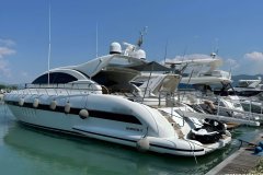 The sailboat features Engines: MAN2842 LE409 1103 kw / 1450hp x 2 Generator: Kohler 17kw frozen x2 Cruising speed 32knts @300Litres/hr engines .