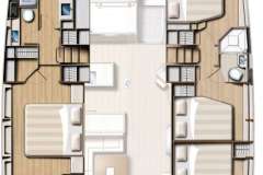 KATLO is introduced primarily as a sailing catamaran. The central space of the yacht is the main saloon, which connects to the aft deck. The aft deck features a variety of seating areas and usually it is where you, as a charter guest, spend most of your time. The tasteful cabins offer designer mattrace beds and feature ensuite bathrooms. The cabins are located in the 2 massive hulls. Multiple portholes provide a connection with the natural world outside.