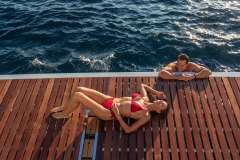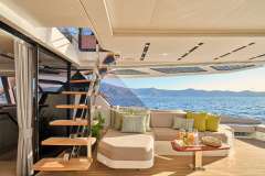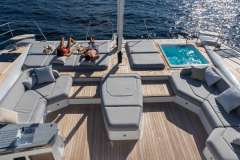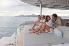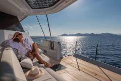 One of her biggest strengths is the sense of volume throughout: wide decks, airy interiors, and a seamless indoor–outdoor layout that makes it easy for everyone to spread out, socialise, or find a quiet corner to unwind. Whether you’re enjoying breakfast in the shade, lounging with a book, or moving between the saloon and aft deck as the breeze comes through, the flow of the yacht feels natural and unforced—perfect for unhurried days hopping between anchorages.