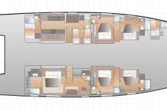 One master cabin (Bed size 1,80 x 2,00 m) and four queen bed guest cabins (bed sizes 1,60 m x 2,00 m) all with private facilities.Safe in master cabins and VIP cabin