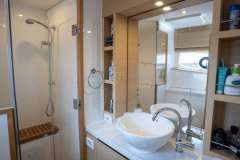 Advertised by DMA Yachting, the majestic charter yacht Moka is a 44 ft power catamaran. The primary distinction of Moka are her impeccable styling and inviting socializing areas. Moka spends the summer and winter season in the Bahamas. She was delivered by the ship builder Aquila in 2024. The well-planned yacht layout features 3 large cabins and easily accommodates a group of 6 guests.