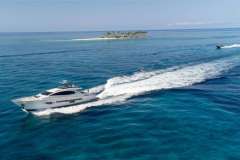 The motor yacht features Her top speed is 31.0 kn and her cruising speed is 22.0 kn and her power comes from four Volvo Penta diesel engines. 27.5kW Onan Generators engines and a generator.