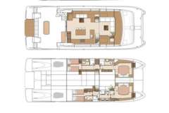 OMAKASE is offered primarily as a power catamaran. The yacht layout radiates from the main saloon, which connects to the aft deck. The aft deck is expansive, with a comfortable dining and seating area and that's where most of the meals are served. The tasteful cabins are connected by stairs to the main saloon - roomy, comfortable and pleasant. The cabins offer designer mattrace beds and feature ensuite bathrooms. Multiple portholes connect you with the outside world.