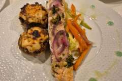 • Salmon en papillote with green asparagus and stuffed baked mushrooms