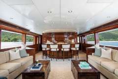 OUTTA TOUCH is classified as a superyacht. The key part of the boat -generously sized aft deck, is right next to the meticulously composed main saloon. The main saloon is a friendly space that is well-equipped and inviting for meaningful conversations and boasts a number of entertainment options. 4 elegant cabins are thoughtfully spread out to allow for comfortable access and private setting.