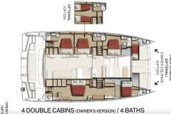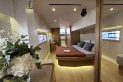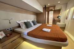 If the charter is 8 pax, crew take stbd forward cabin.For guests, the yacht offers 1 king, 2 queens and a twin cabin (midship, port side).