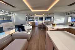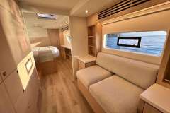 SOLAIRE is offered primarily as a power catamaran. The central space of the yacht is the main saloon, which connects to the aft deck. The aft deck is where heart of the yacht is and usually it is where you, as a charter guest, spend most of your time. The tastefully decorated cabins are connected by stairs to the main saloon - roomy, comfortable and pleasant. The cabins are connected by stairs to the main saloon - roomy, comfortable and pleasant. Multiple portholes supply a sunny feeling, with the option for darkness and privacy.