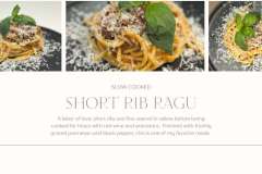 • Slow cooked short rib ragu with confit tomato, grated parmesan, & garlic knots