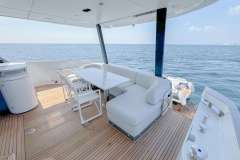 The motor yacht features 2 Volvo D-13 1350 HP each 1 Generator Kohler 21.5 kW engines and a generator.