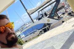 He have to park catamaran as close as posibile to the beach, first line with best view is the only option. Love to teaching surfing behind motorboat or e-foil, no mather if its 6 year old or 66 year old, he will make you surfing in less than 30 minutes. In the other hand, for less sporty group he will provide relaxing atmosfere, sailing always hidden from waves, with rooftop cinema under stars in the best calm locations, and doing everything in the shadow like good spirit of the boat.