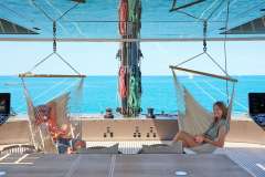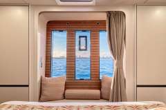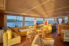Sunreef Eco 80 2024 is offered primarily as a sailing catamaran. The yacht layout radiates from the main saloon, which connects to the aft deck. The aft deck is where heart of the yacht is and usually it is where you, as a charter guest, spend most of your time. The modern cabins are located below the main saloon, connected by stairs (inquire about handicapped access). The cabins are located below the main saloon, connected by stairs (inquire about handicapped access). Multiple portholes add to the feeling of connection with the discovered environment.
