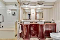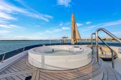 - King Master Stateroom, full beam, and ensuite bathroom aft of pilothouse with private access to aft sky lounge deck. Ensuite bathroom features a separate shower and jacuzzi soaking tub.