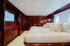 Located forward on the main deck features a king bed with owner's study, vanity table/desk, private his and hers dressing rooms. Dual china sinks, shower with glass doors, marble floors, Kohler bidet. 42" HD LCD TV with surround sound. Samsung Blu Ray DVD/CD player. iPod docking station.