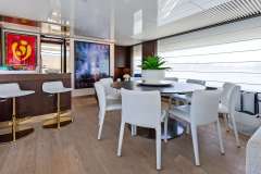 THE BRASS RING is classified as a superyacht. The generously sized aft deck, continues to the meticulously composed main saloon. The main saloon is a well-design space to spend time when the aft deck might not be as desirable (at port, private conversations) and boasts a number of entertainment options. 4 elegant cabins are purposefully laid out to allow for comfortable access and private setting.
