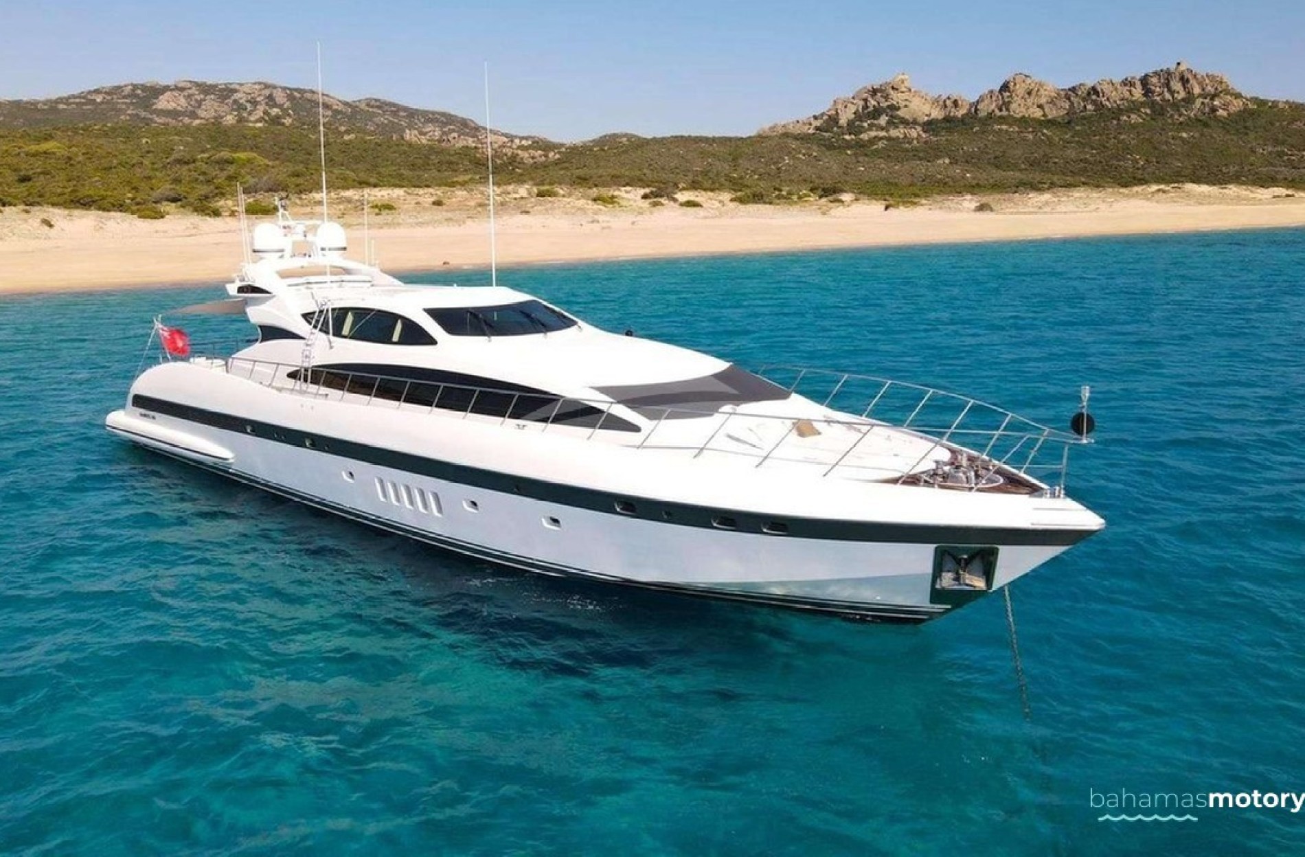 Offered by DMA Yachting, the breathtaking charter yacht DAYA is a 104 ft motor yacht featuring a jetski and a hot tub. The primary distinction of DAYA are her impeccable styling and fantastic layout. DAYA spends the summer and winter season in the Bahamas. She was delivered by the renowned boatbuilder Mangusta in 2007. An elegant refit was fulfilled in 2015. The ingenious yacht layout features 4 large cabins and comfortably accommodates a group of 10 guests.