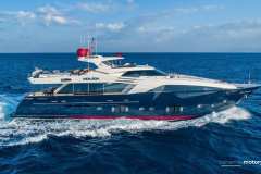 Offered by DMA Yachting, the impressive charter yacht VIDA BOA is a 100 ft motor yacht featuring a jetski and a hot tub. The primary distinction of VIDA BOA are her generous space and alfresco dining areas. VIDA BOA spends the summer and winter season in the Bahamas. She was constructed by the well-known ship builder Ferretti in 2012. A comprehensive refit was finalized in 2016. The ingenious yacht layout features 5 cozy cabins and comfortably accommodates up to 10 guests.